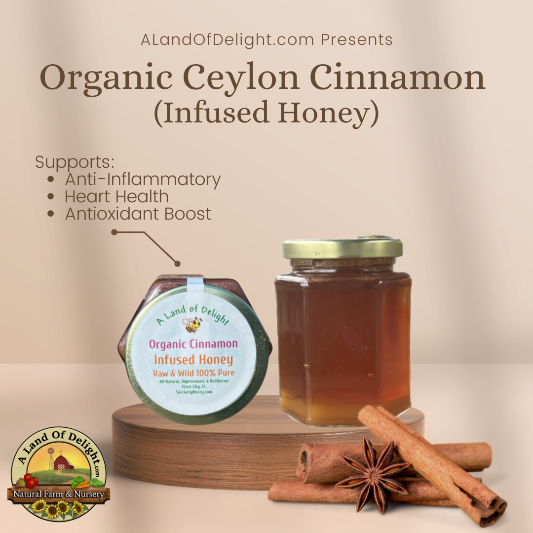 Specialty Gourmet Honey: Organic Ceylon Cinnamon Infused Raw Honey - 12oz Jar