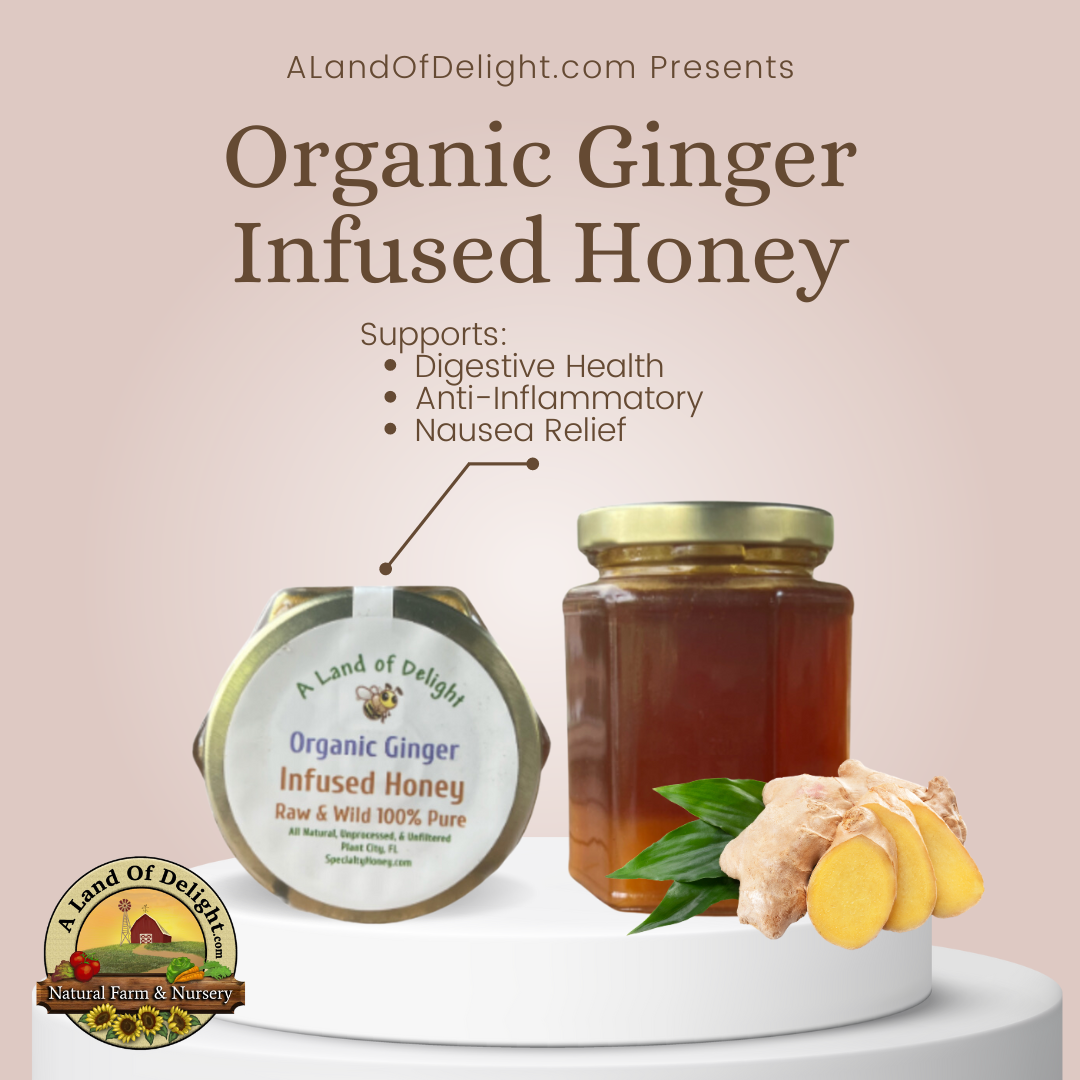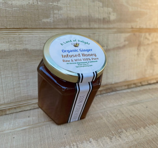 Specialty Gourmet Honey: Organic Ginger Infused Raw Honey - 12oz Jar