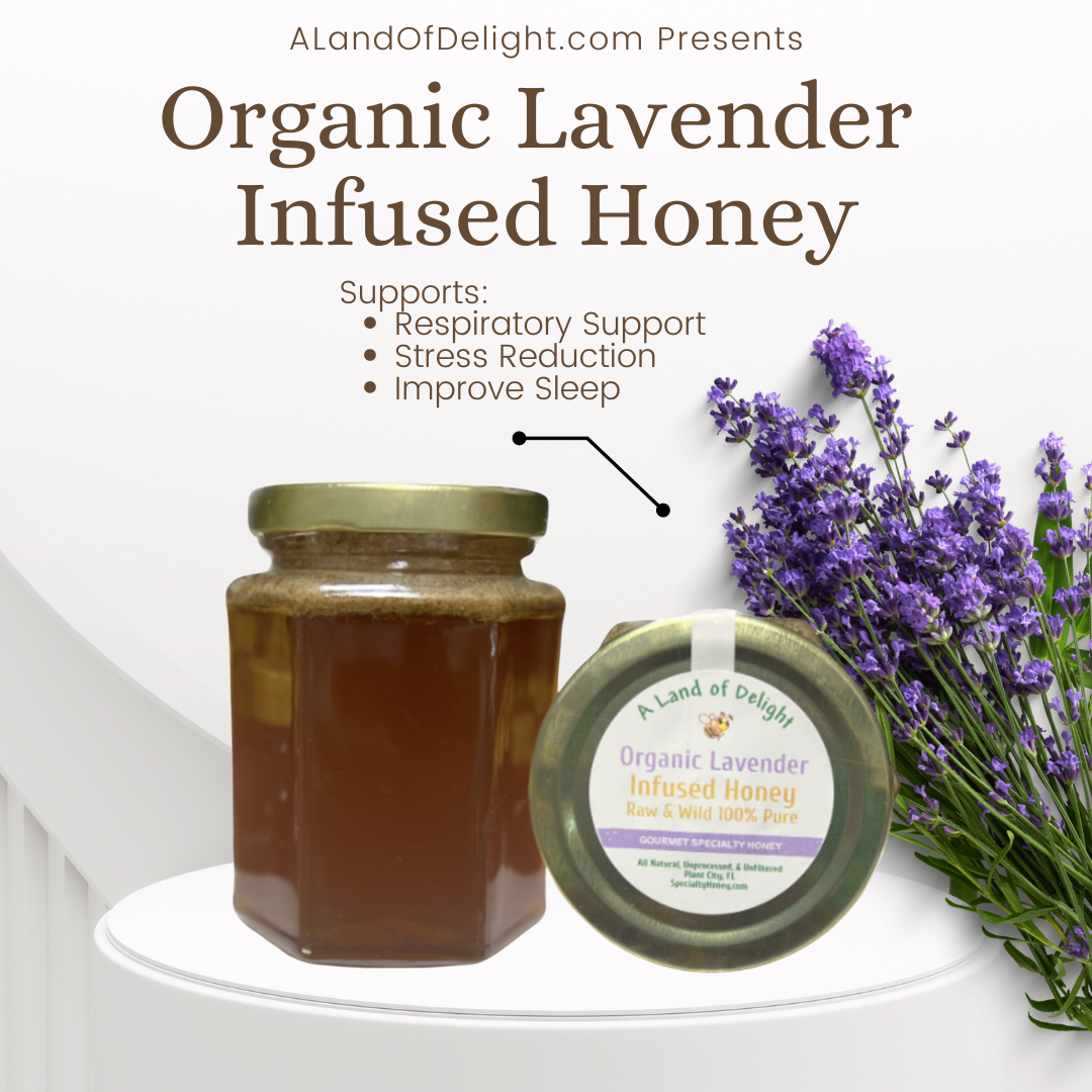 Specialty Gourmet Honey: Organic Lavender Infused Raw Honey - 12oz Jar